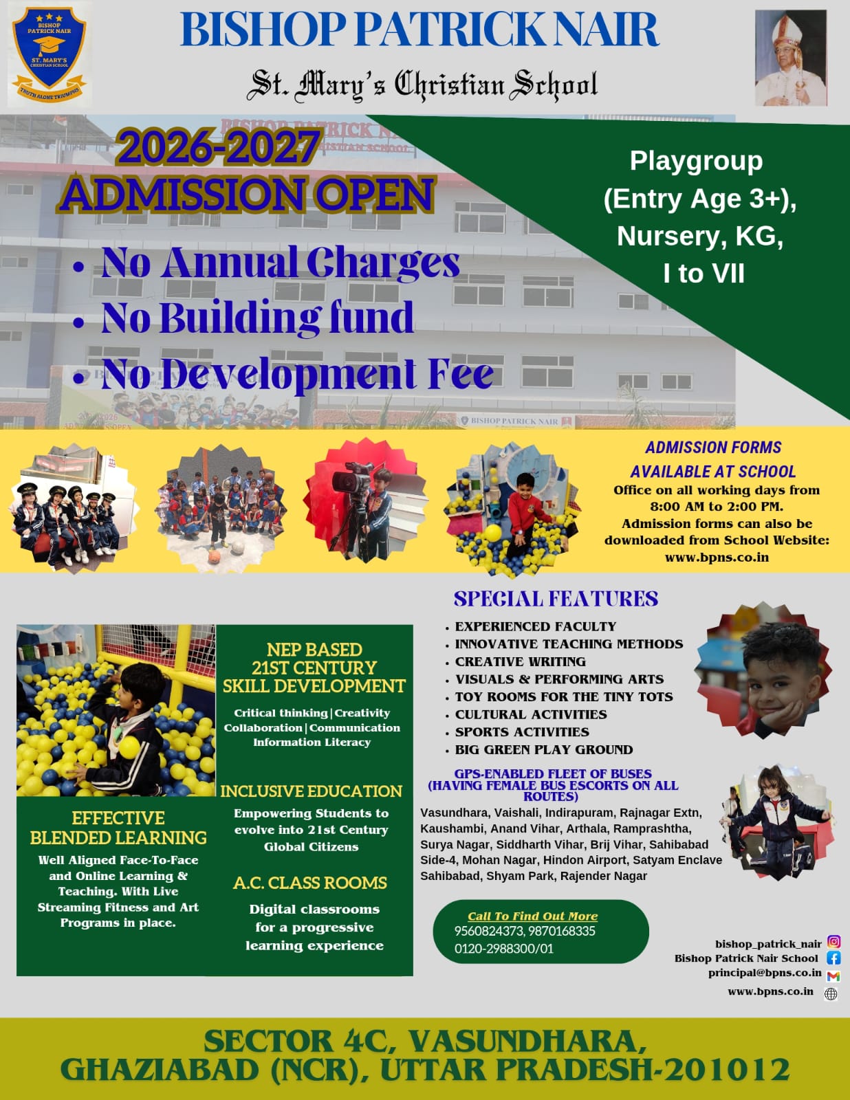 Bishop Patrick Nair St. Mary's Christian School in Vasundhara, established in April 2024 is functioning with high academic standards, exciting extra-curricular activities and a rich diversified holistic learning. It is truly premier institution in its staff, its students, its curriculum and its accreditation.